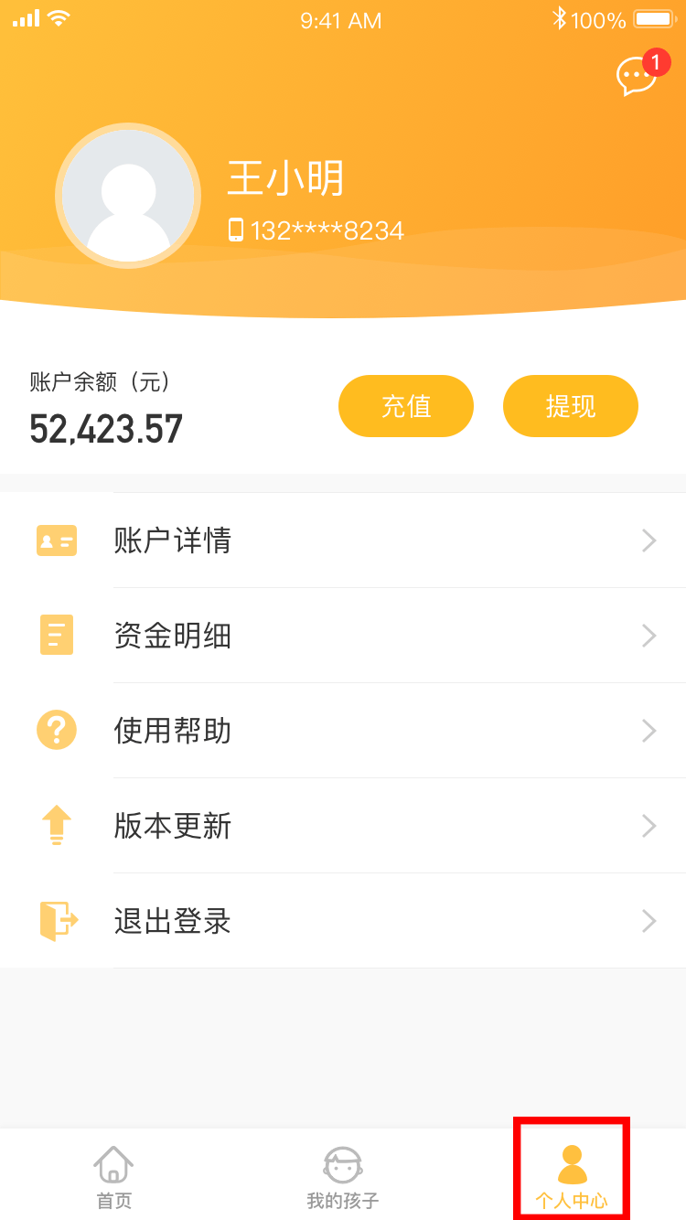 操作:少儿版首页向家长取现 - 家长版APP收到消息